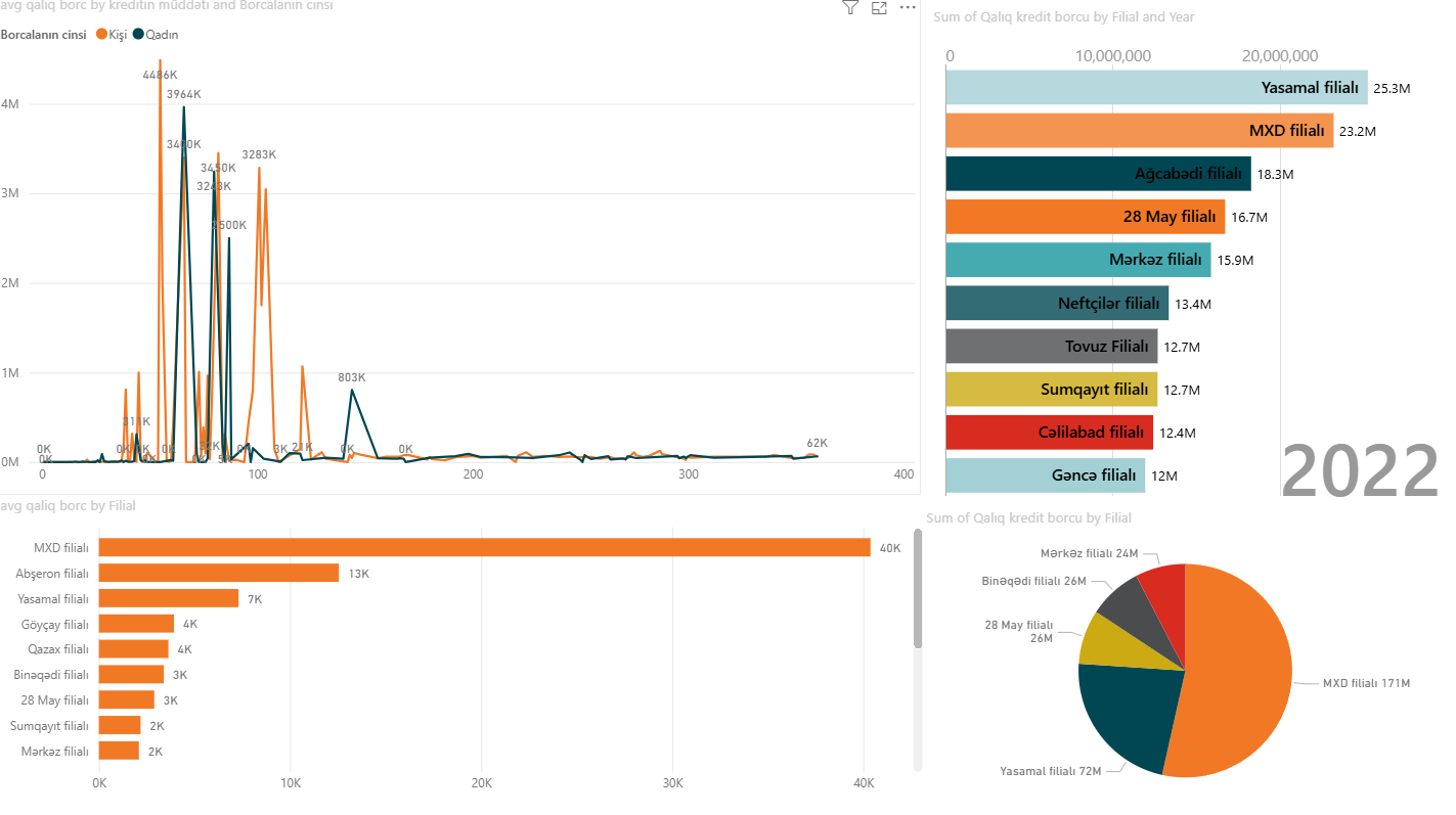 - Geospatial & Trend Analysis: Filiallar üzrə qalıq borc trendinin və borcalanların cins bölgüsünün tədqiqi.