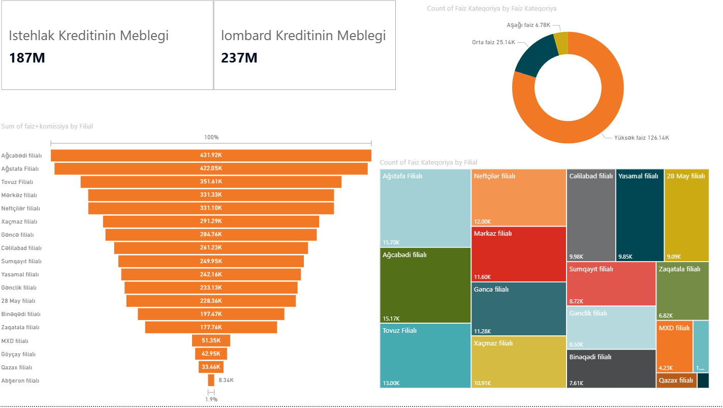 Bu layihə bank sektorunda kredit portfelinin idarə edilməsi, faiz dərəcələrinin optimallaşdırılması və filial performansının analizi üçün hazırlanıb.